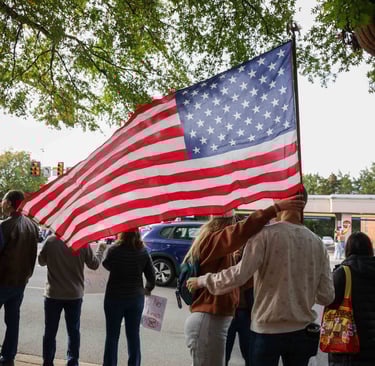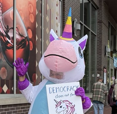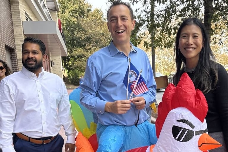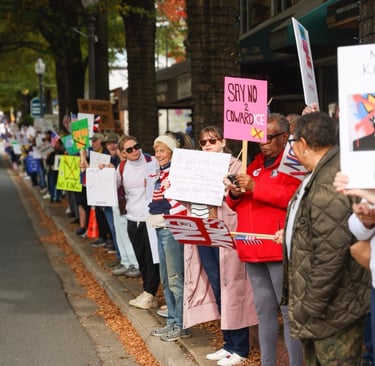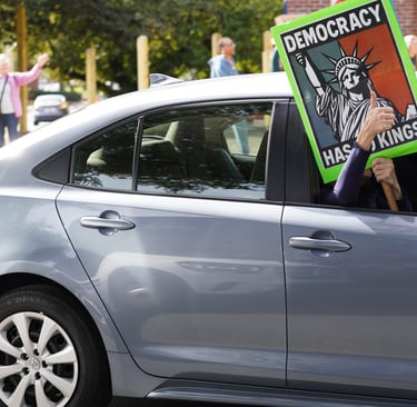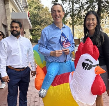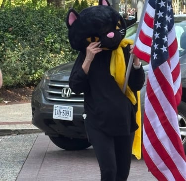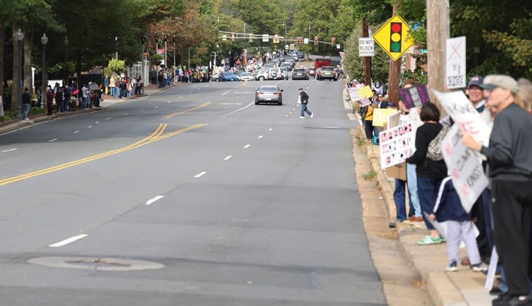 Patriots, 2200 of them - neighbors, families, pets, and inflatable creatures - partied joyfully to the sound of honks and cheers from drivers passing by. We filled all 2.6 miles of Virginia Route 7 in "The Little City," our village of just 15,000 inside the Washington, DC beltway.