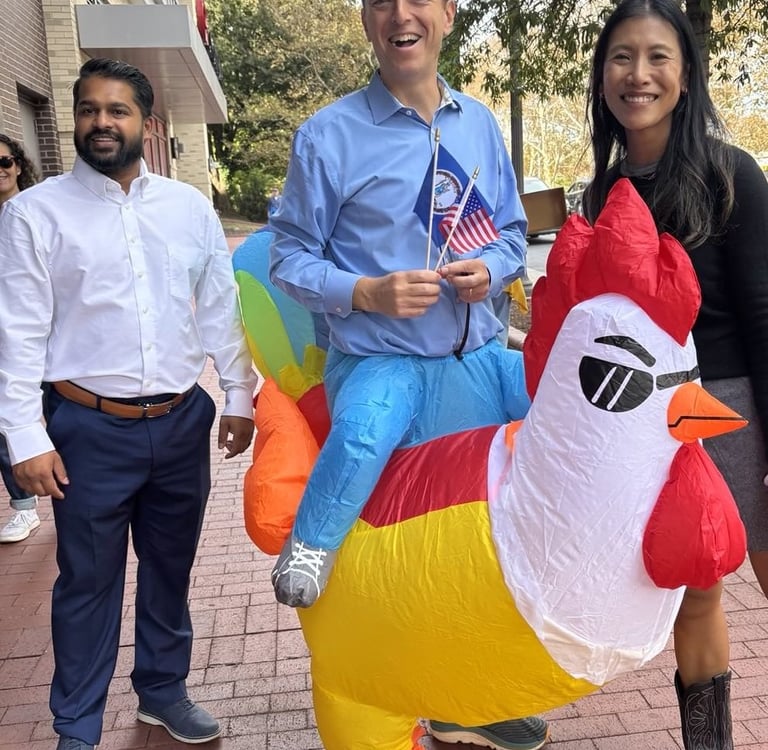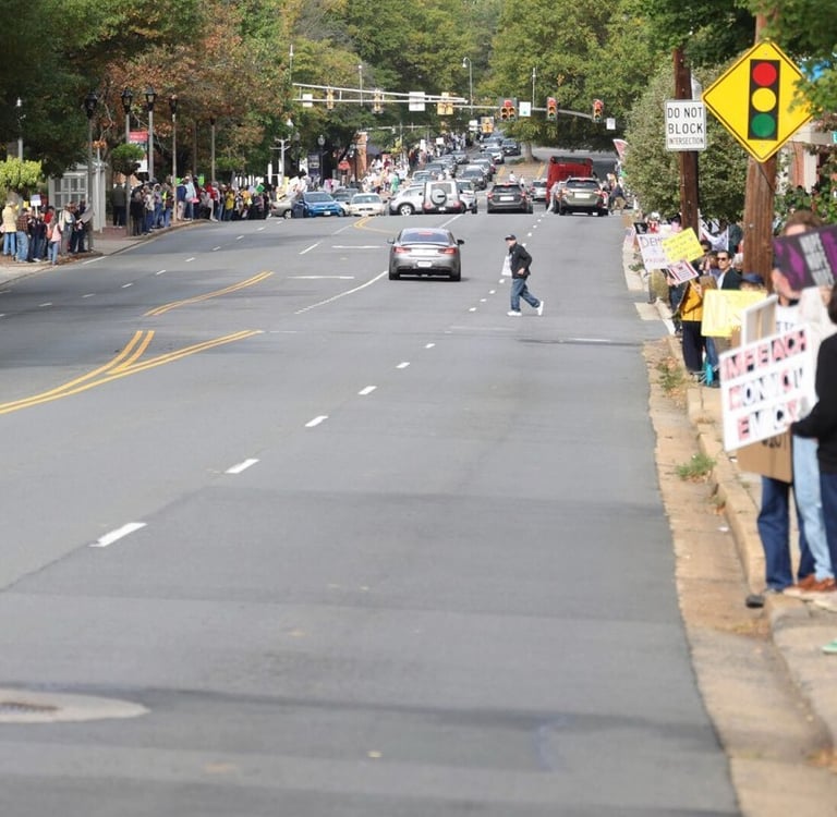 Patriots, 2200 of them - neighbors, families, pets, and inflatable creatures - partied joyfully to the sound of honks and cheers from drivers passing by. We filled all 2.6 miles of Virginia Route 7 in "The Little City," our village of just 15,000 inside the Washington, DC beltway.